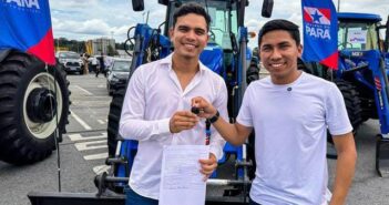 O Vice Prefeito Vanderson Garcia ( representando o Prefeito Hamilton Brito) acompanhado do secretário de agricultura Matheus Almeida recebe o trator agrícola das mãos…